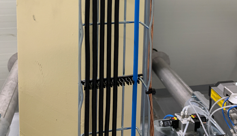 Passer til Cablofil 100 mm gitterbakker. Op til 4 gange så hurtig at montere, sammenlignet med kabelbindere.