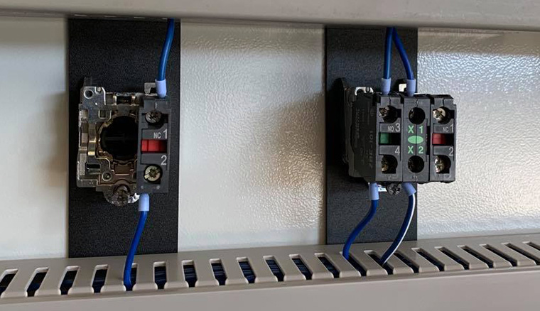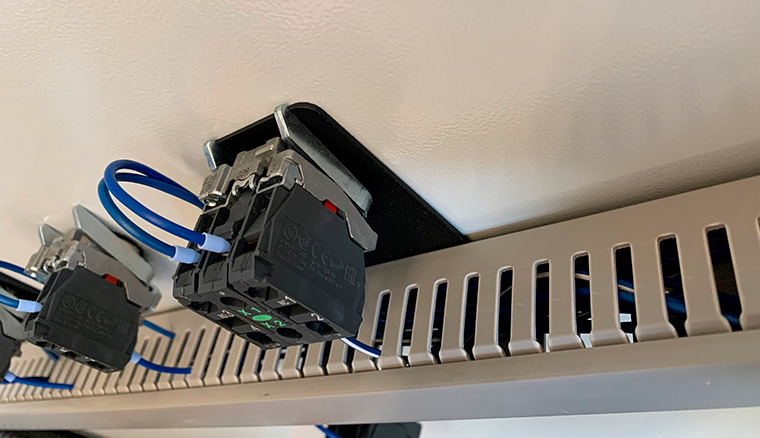 Download databladPasser til blandt andet Siemens og Schneider Electric trykknapper. Med en bolt kan der monteres en kabelbakke på denne model